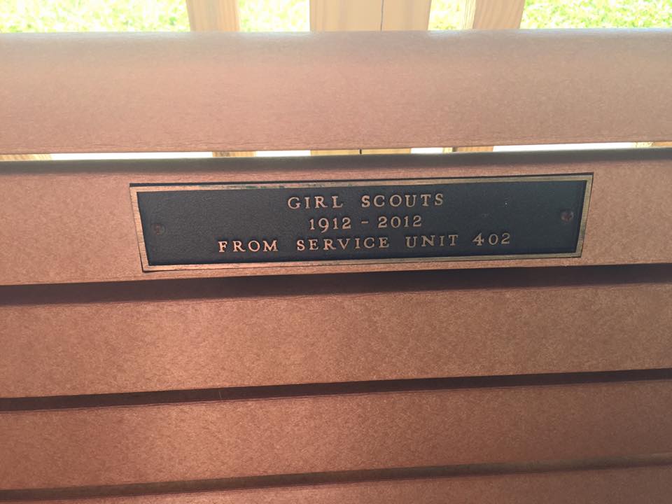 su402 donated a bench and plaque to celebrate 100 years of Girl Scouts – the Year of the Girl.
