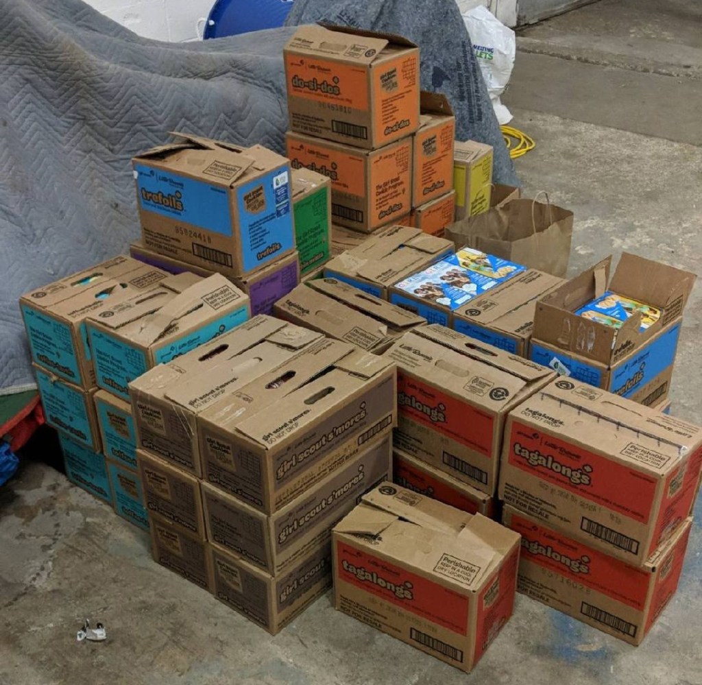 Troops 40624, 40666, 40694, 42575, 43108, 43266, 45325, 45568, 45582, 45710 45832, and 45916 donated 564 boxes of cookies to our local first responders, hospitals, and post office!